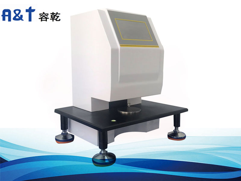 測厚儀采用接觸式測試原理,截取一定尺寸試樣,測厚儀測量頭自動降落于試樣之上,依靠固定的壓力和固定的接觸面積下測試出試樣的厚度值。